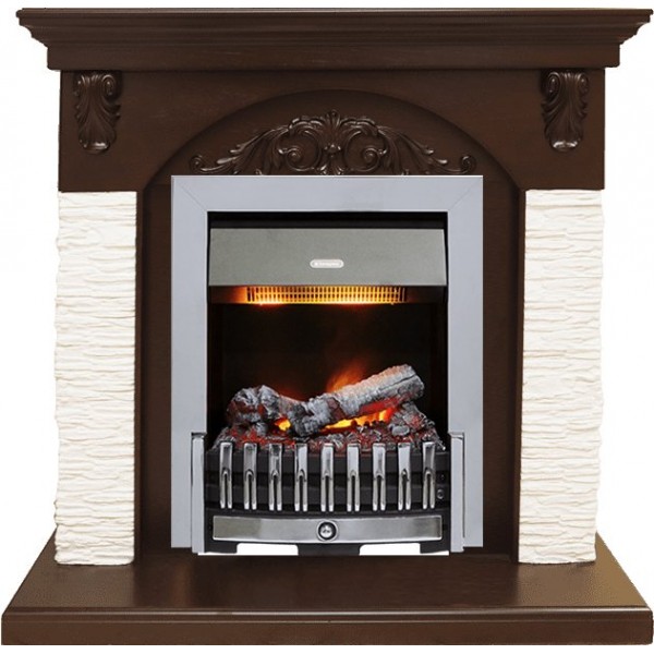 Каминокомплект Bern Сланец мелкий белый / Темный дуб с очагом Danville Chrome FB2
