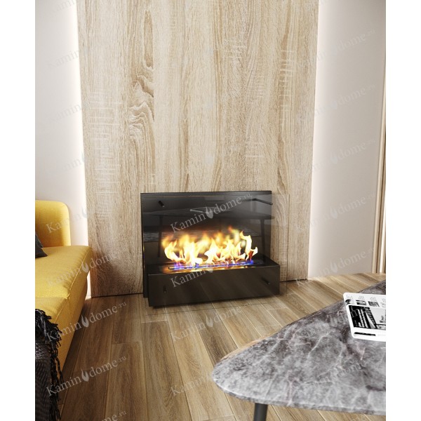 Биокамин Amber имеет простую и прочную конструкцию. Стальной корпус, покрытый качественной порошковой краской (Германия), с фронтальной стороны дополняет защитный экран из закаленного стекла. Топливный контейнер — это нержавеющая сталь со шлифованной поверхностью. Шлифовка нужна не только для красоты: она хорошо скрывает потертости, царапины, следы пальцев, потому годами сохраняет свой вид, чего нельзя сказать о стали полированной.