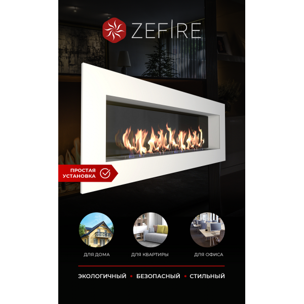 Биокамин Elliot 1800 белый со стемалитом (Zefire)