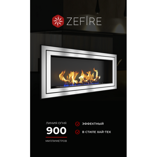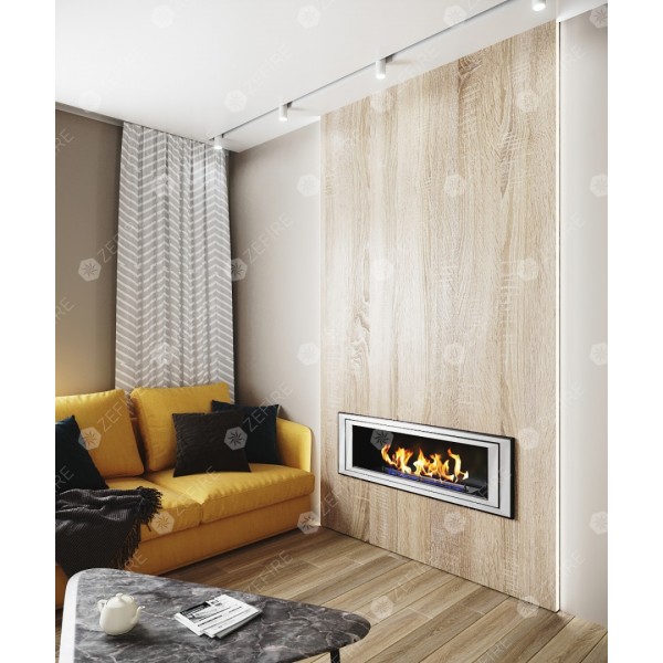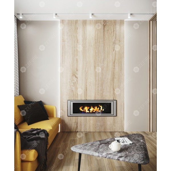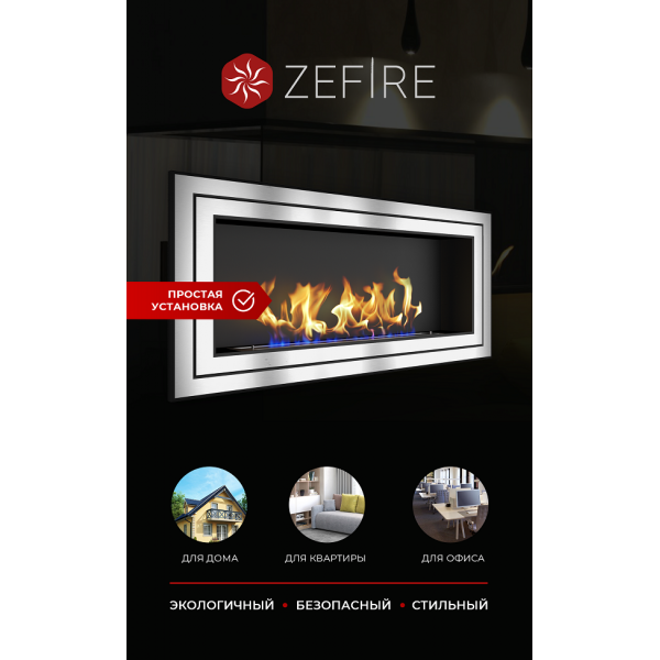 Sirius 1500 отечественной торговой марки ZeFire – масштабная модель встраиваемого настенного биокамина с оригинальным дизайном и простым мануальным управлением. Декоративный очаг размером 650х1500 см напоминает рамку картины, однако вместо произведения искусства интерьер украшает живое пламя без дыма, копоти и гари. Благодаря этой особенности биокамин не нуждается в дымоходе и других сложных коммуникациях.