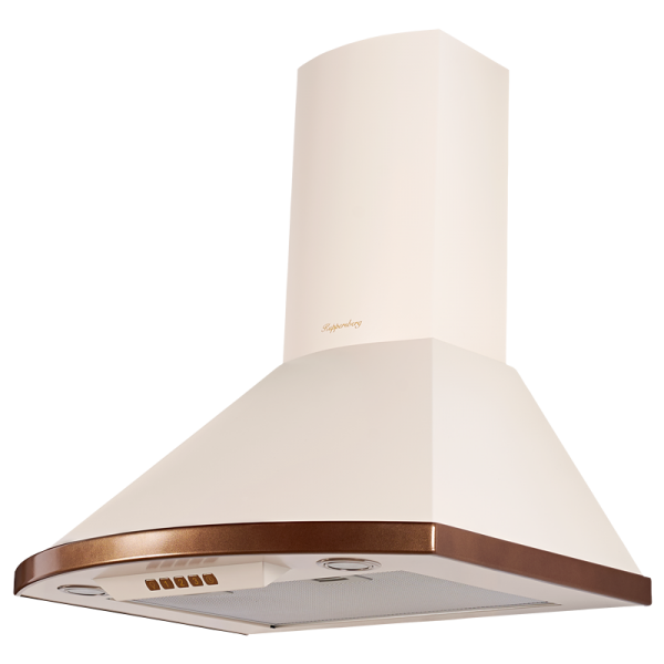 Элегантная купольная вытяжка BONA 60 C Bronze бежевого цвета с коробом в тон – необходимый прибор, который сможет помочь в борьбе с последствиями пригоревшей еды: дымовой завесой, неприятными ароматами и вредными для здоровья человека химическими соединениями. Оригинальная форма агрегата прекрасно впишется в классический интерьер кухни. Электронное кнопочное управление и наличие таймера упрощают процесс эксплуатации вытяжки.