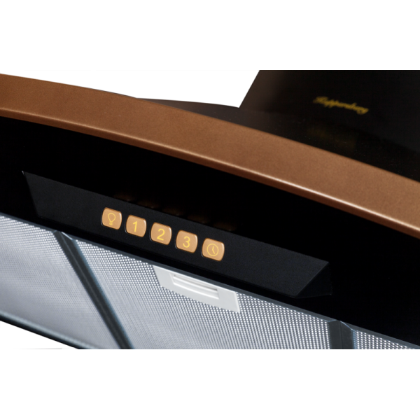 Эргономичная и стильная купольная вытяжка BONA 90 B Bronze способна в считанные минуты эффективно произвести отведение дыма, смрада, копоти, появляющихся из-за неожиданного подгорания готовящейся еды на кухонной плите.