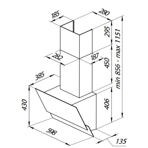 Эта элегантная наклонная вытяжка рассчитана на качественную рециркуляцию воздуха в небольшом помещении площадью до 20м2.
