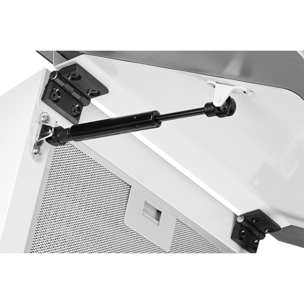 Изысканная наклонная вытяжка F 612 W белого цвета с коробом из белой эмали – прибор, который просто необходим для активного поглощения дыма, копоти, гари и вредных элементов, иногда сопровождающих процесс приготовления еды. Этот полезный агрегат с фасадом из закаленного стекла дополнит интерьер небольшого кухонного помещения, оформленного в стилистике High-Tech.