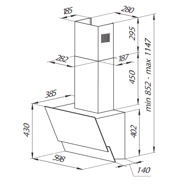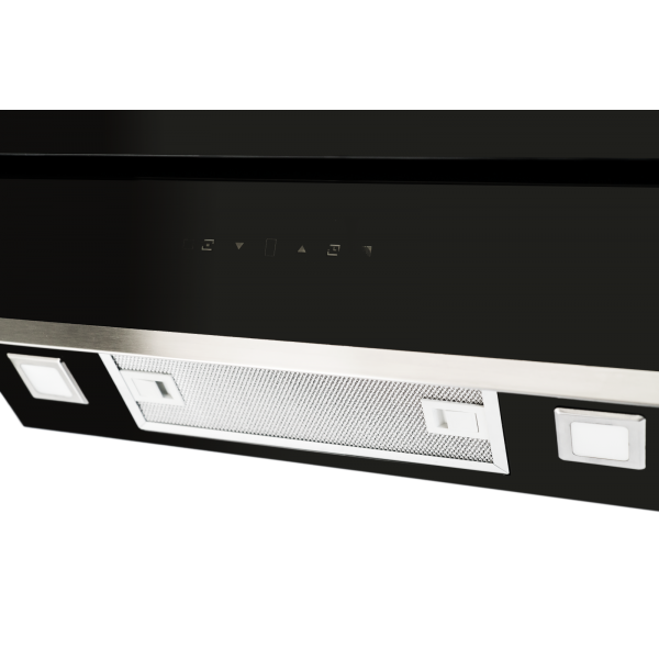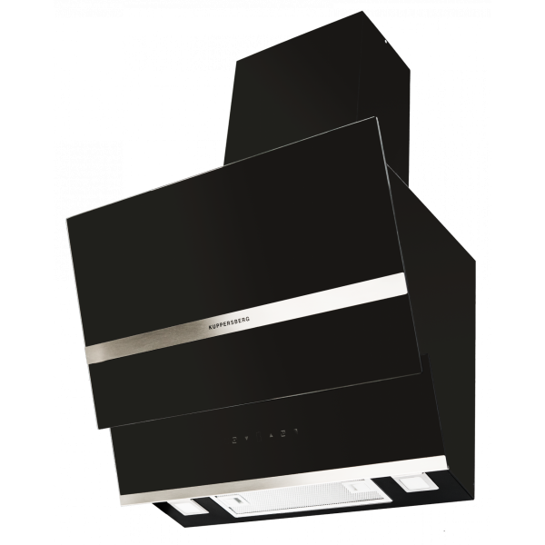 Стильная черная наклонная кухонная вытяжка F 630 B с фасадом из закаленного стекла и коробом из черной эмали способна стать оригинальным дополнением кухни, выдержанной в стилистике High-Tech.