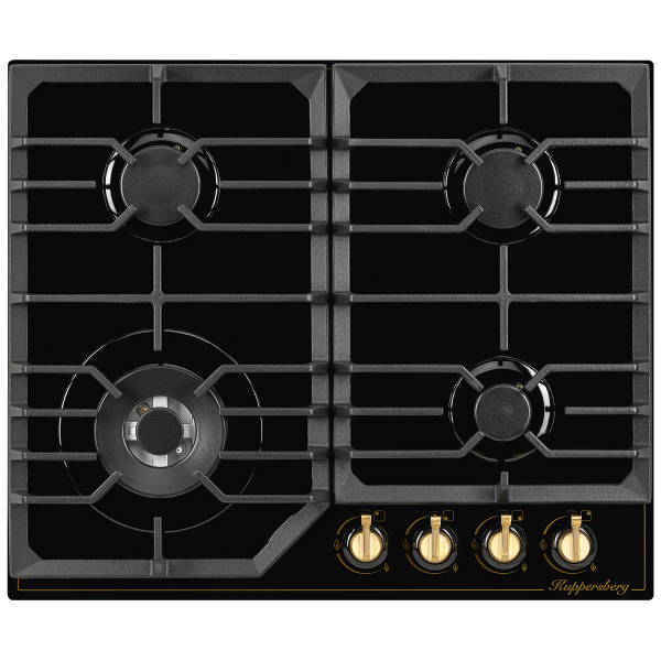 Газовая варочная панель FG 603 B Bronze чёрного цвета – стандартное и удобное решение для оформления нового дизайна кухни в стиле Classic. Изготовлен данный прибор из качественного закаленного стекла, а фурнитура бронзового цвета придает ему особую элегантность.