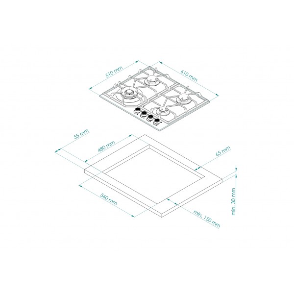 - Мощность конфорок, кВт: задняя левая: 2 кВт