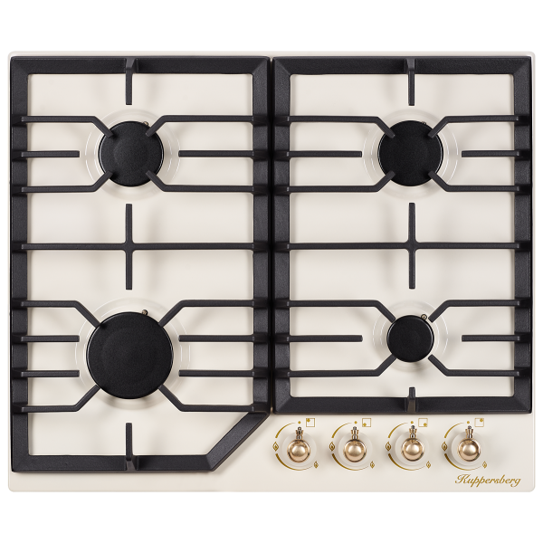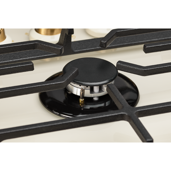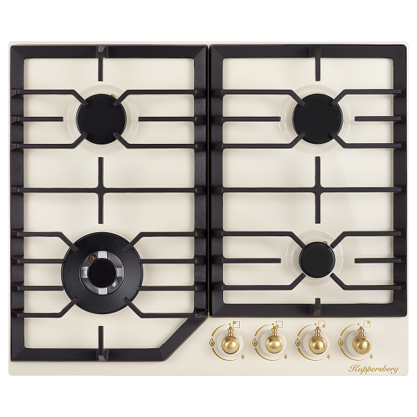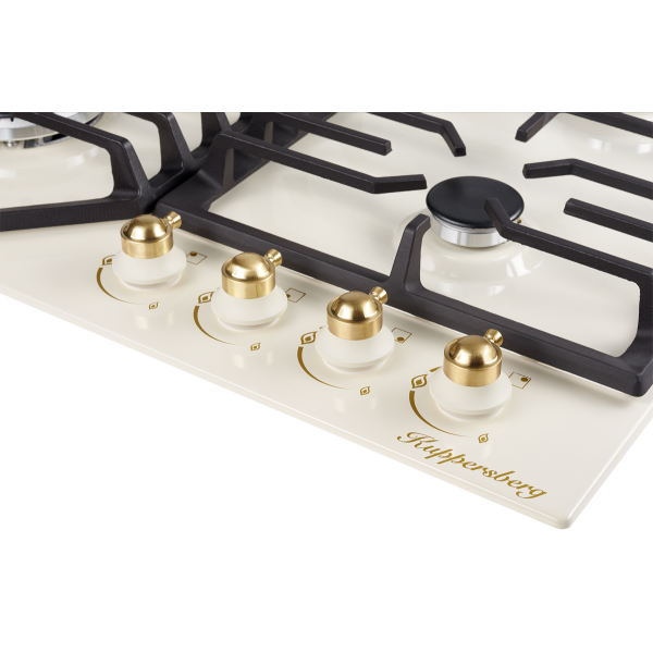 Газовая встраиваемая варочная панель FS 601 C Bronze бежевого оттенка с бронзовой фурнитурой изготовлена из прочной многослойной эмали и дополнена чугунными решетками, а значит, отличается практичностью.