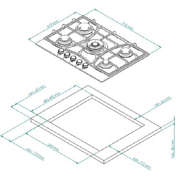 - Мощность конфорок, кВт: задняя левая: 2,9 кВт