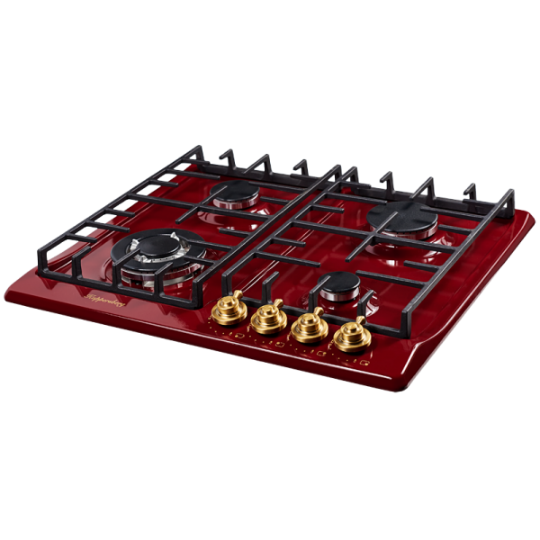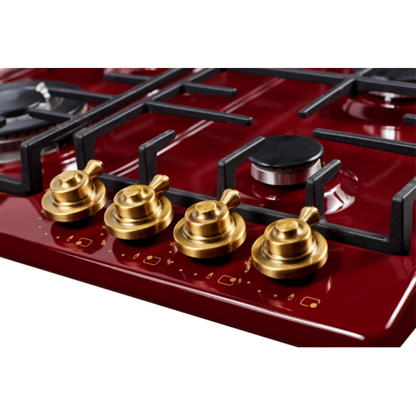 Бордовая газовая варочная панель FV6TGRZ BOR Bronze – экстравагантное решение для комплектации кухни, выдержанной в классическом стиле. Прибор изготовлен из прочной эмали, дополнен металлическими бронзовыми переключателями.