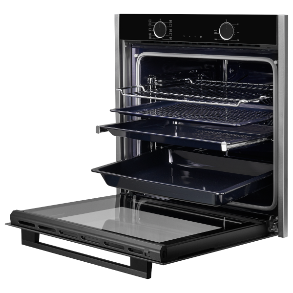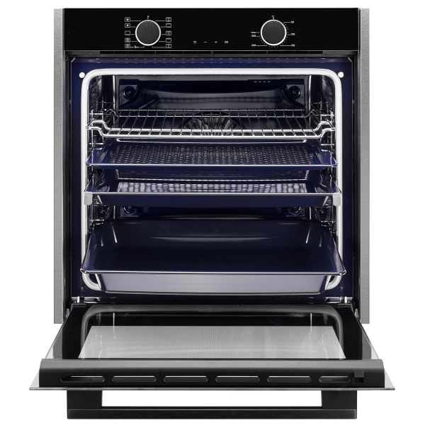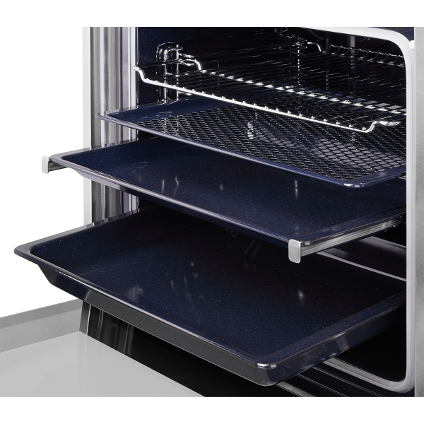 Эта модель духового шкафа обладает функцией разморозки и 10 режимами работы, а также поставляется со стандартными и глубокими противнями, решеткой для гриля и перфорированным противнем FryArt. Кроме того, его эмаль Crystal Clean позволяет легко очищать устройство с минимальными усилиями.
