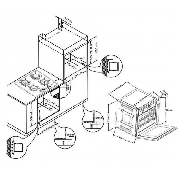 Размер ниши для встраивания в колонну (ВхШхГ), мм