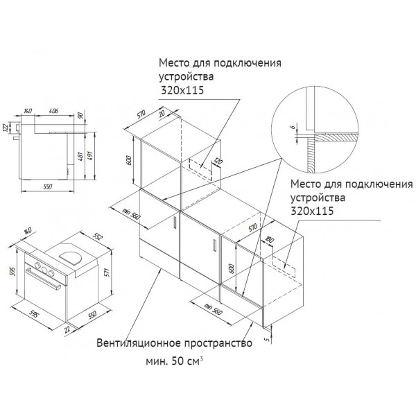 Размер ниши для встраивания в колонну (ВхШхГ), мм