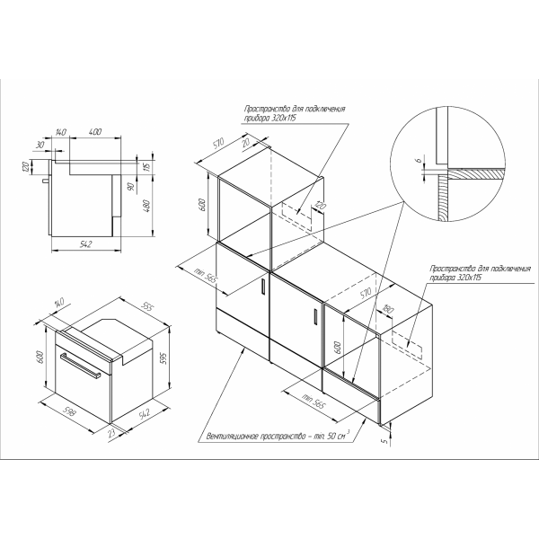 Размер ниши для встраивания (ВхШхГ), мм