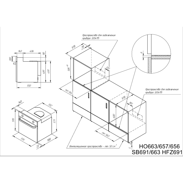 Размер ниши для встраивания в колонну (ВхШхГ), мм