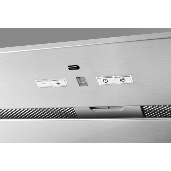 Кухонная встраиваемая вытяжка IBOX 60 X цвета нержавеющей стали обеспечит процесс стабильной рециркуляции загрязненного воздуха в небольшой кухне площадью до 20м2. Прибор оснащен кнопочным электронным управлением и выдвижным механизмом, он легок в уходе и эргономичен. Такой компактный агрегат станет отличным дополнением High-Tech-интерьера. Он практически моментально нейтрализует смрад, сажу, опасные испарения, дым и копоть, сопровождающие подгорание еды на плите.