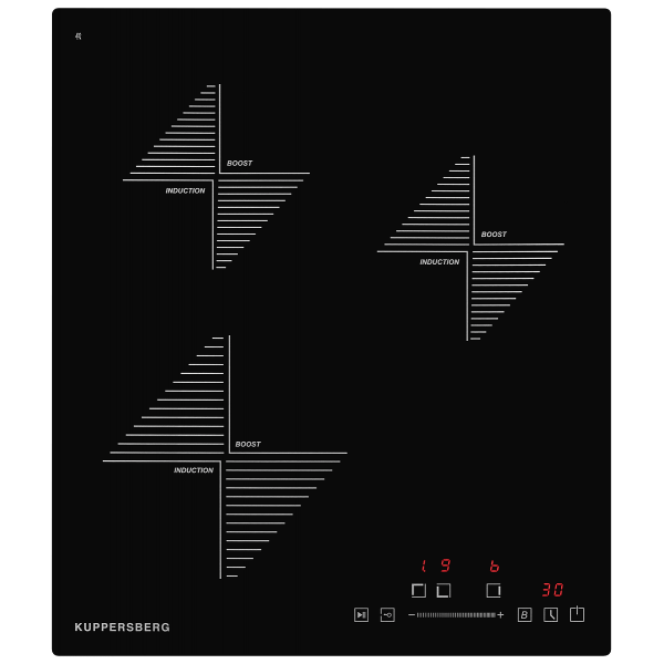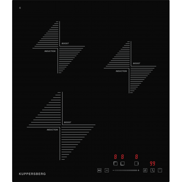 3 конфорки с функцией Booster, обеспечивающей моментальный нагрев;