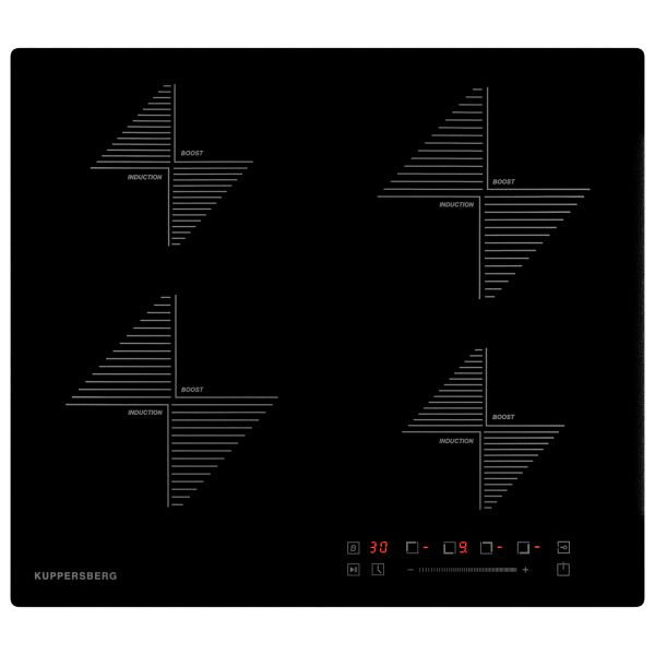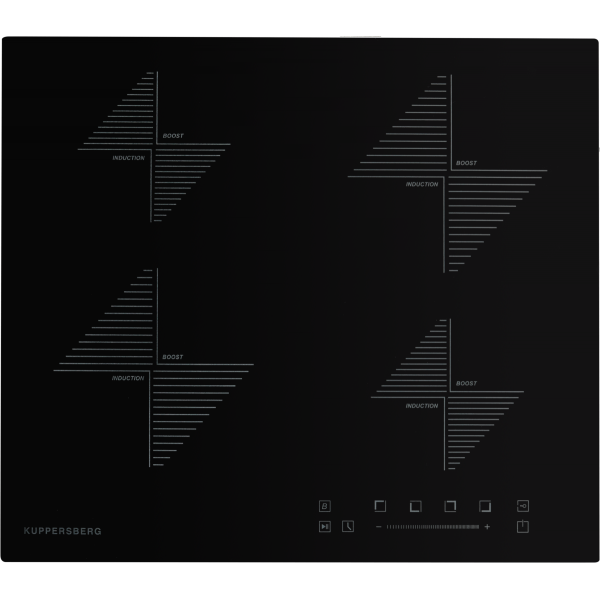 четыре конфорки, способные моментально нагреваться, благодаря функции Booster;