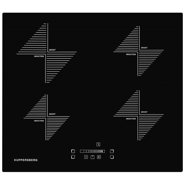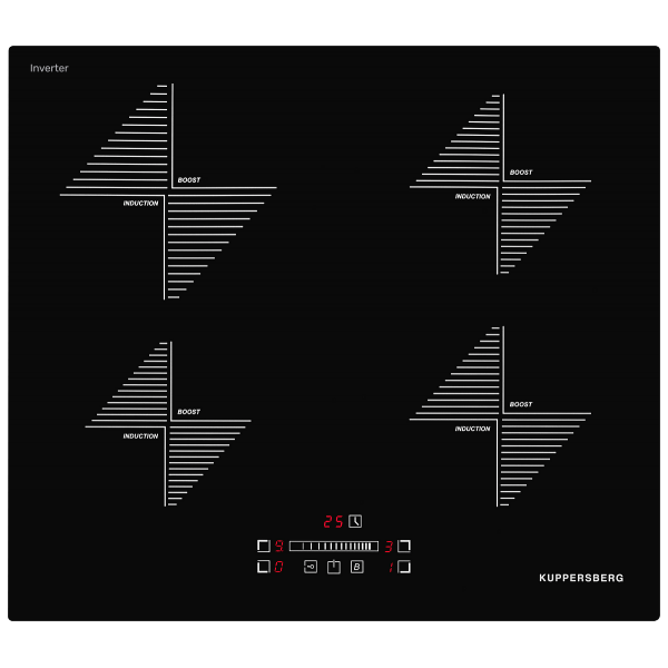 четыре конфорки, способные моментально нагреваться за счет функции Booster;