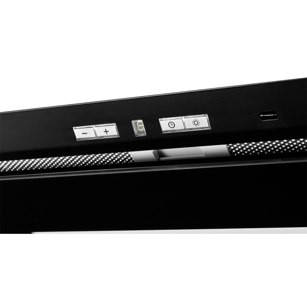 Встраиваемая вытяжка INBOX 54 В черного цвета способна в считанные минуты очистить кухонное помещение от гари и неприятного запаха. Функционал модели впечатляет: