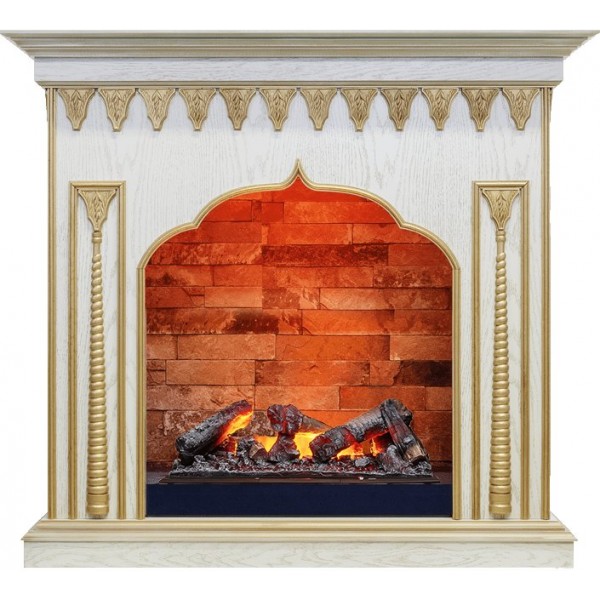 Каминокомплект Abu-Dabi - Белый дуб, патина золото с очагом Cassette 600 NH