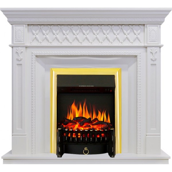 Каминокомплект Alexandria - Белый дуб с очагом Fobos FX Brass