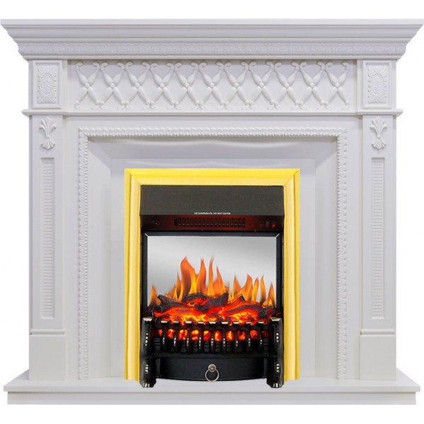 Каминокомплект Alexandria - Белый дуб с очагом Fobos FX M Brass
