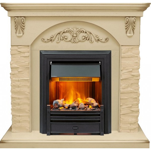Каминокомплект Bern Сланец крупный бежевый / Алебастр темная патина с очагом Brookline Black