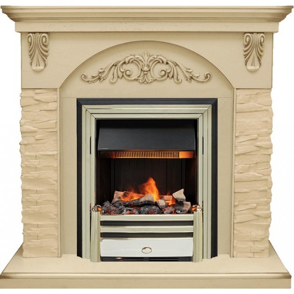 Каминокомплект Bern Сланец крупный бежевый / Алебастр темная патина с очагом Cavendish