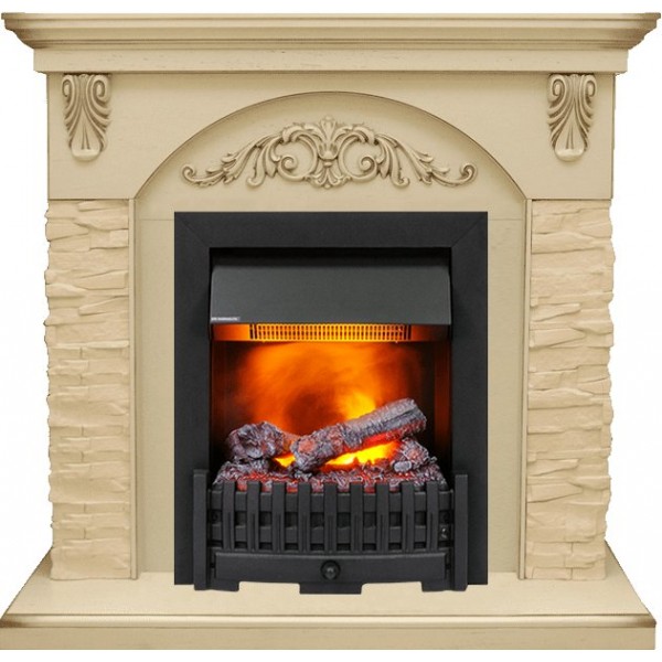 Каминокомплект Bern Сланец крупный бежевый / Алебастр темная патина с очагом Danville Black FB2
