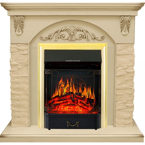 Каминокомплект Bern Сланец крупный бежевый / Алебастр темная патина с очагом Majestic FX Brass