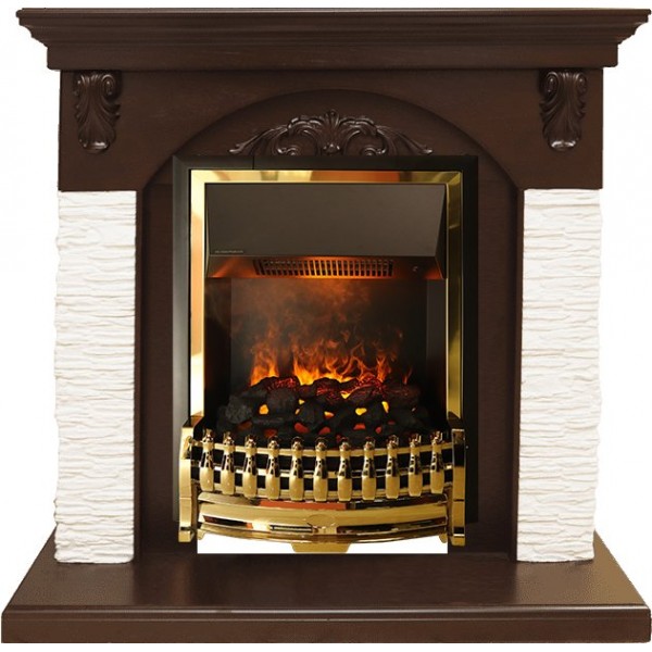 Каминокомплект Bern Сланец мелкий белый / Темный дуб с очагом Atherton