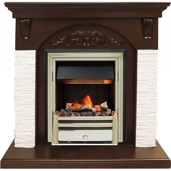 Каминокомплект Bern Сланец мелкий белый / Темный дуб с очагом Cavendish
