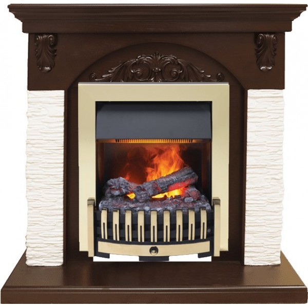 Каминокомплект Bern Сланец мелкий белый / Темный дуб с очагом Danville Brass FB2
