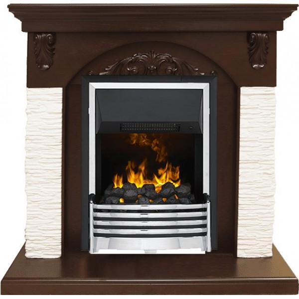 Каминокомплект Bern Сланец мелкий белый / Темный дуб с очагом Flagstaff