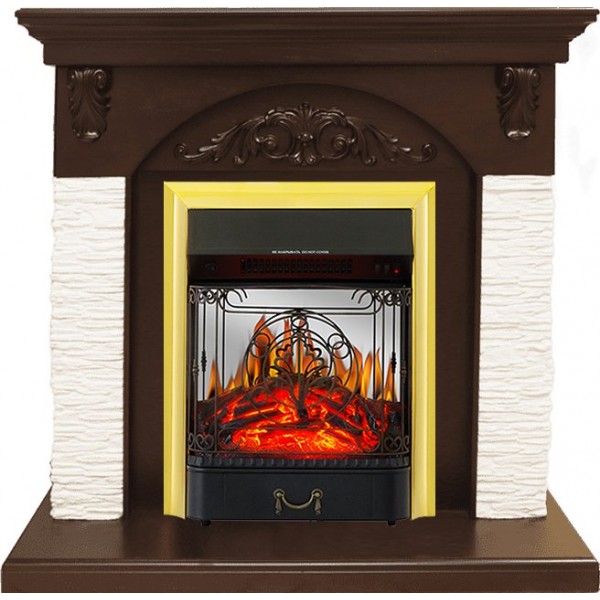 Каминокомплект Bern Сланец мелкий белый / Темный дуб с очагом Majestic FX M Brass
