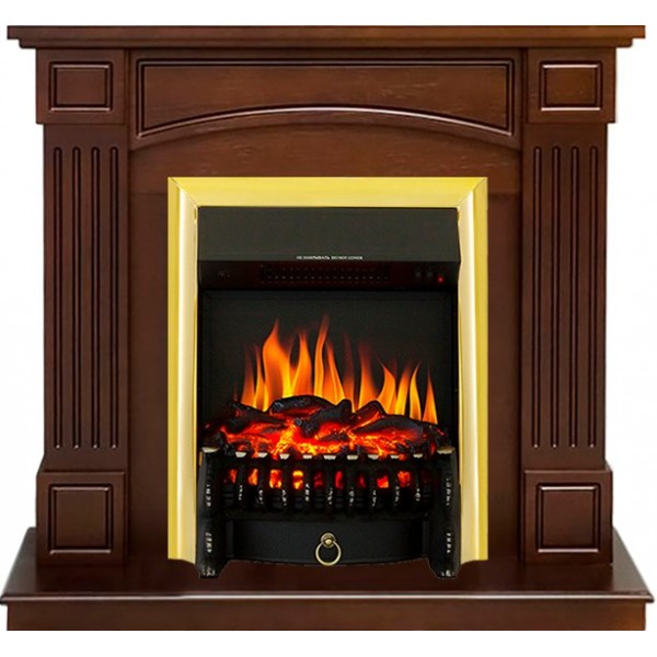 Каминокомплект Boston - Темный дуб (Высота 925см) с очагом Fobos FX Brass