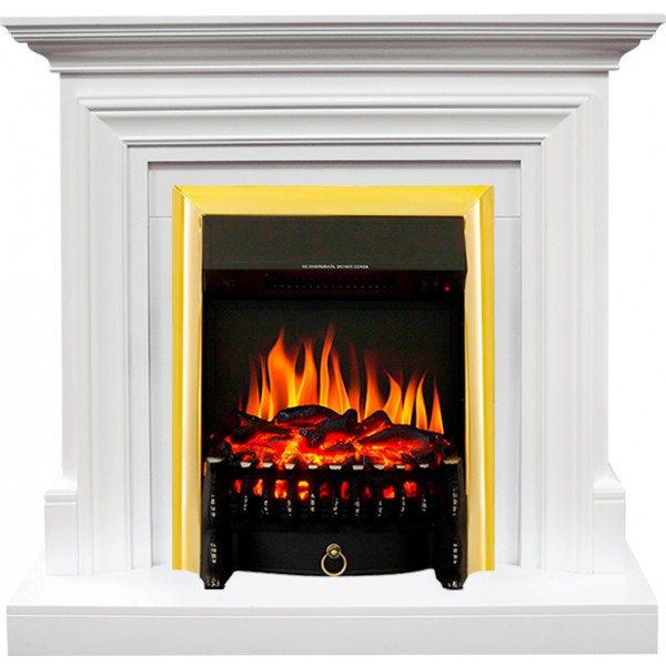 Каминокомплект Bradford - Белый с очагом Fobos FX Brass