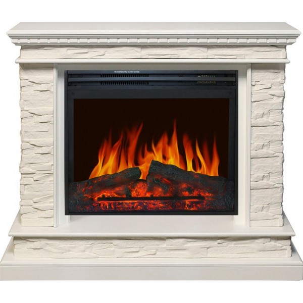 Каминокомплект Calgary - Белый / Сланец белый с очагом Jupiter FX New