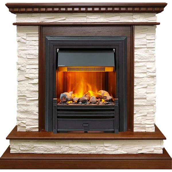 Каминокомплект Calgary - Дуб / Сланец белый с очагом Brookline Black