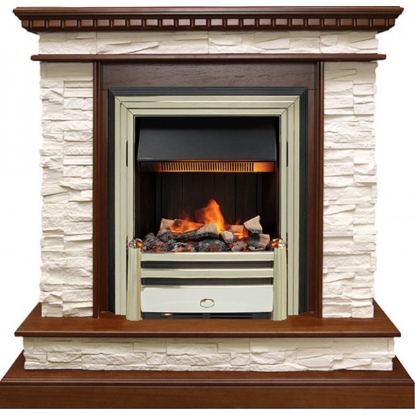 Каминокомплект Calgary - Дуб / Сланец белый с очагом Cavendish