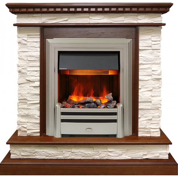 Каминокомплект Calgary - Дуб / Сланец белый с очагом Chesford