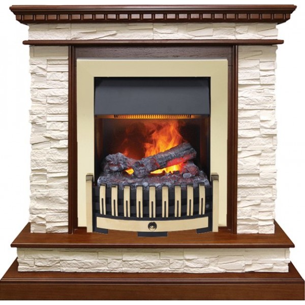 Каминокомплект Calgary - Дуб / Сланец белый с очагом Danville Brass FB2
