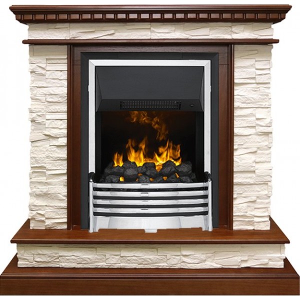 Каминокомплект Calgary - Дуб / Сланец белый с очагом Flagstaff