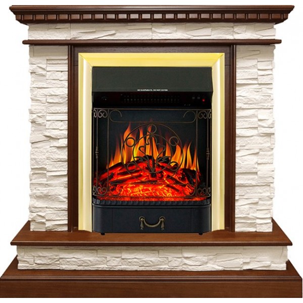 Каминокомплект Calgary - Дуб / Сланец белый с очагом Majestic FX Brass