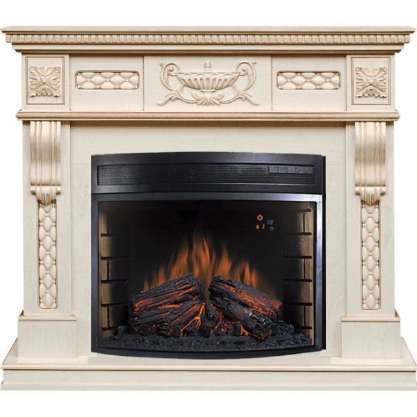 Каминокомплект Corsica - Слоновая кость с патиной с очагом Dioramic 28 LED FX
