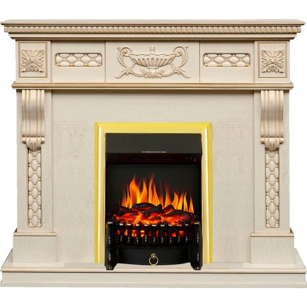 Каминокомплект Corsica - Слоновая кость с патиной (Ширина 1100) с очагом Fobos FX Brass
