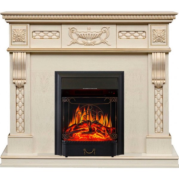 Каминокомплект Corsica - Слоновая кость с патиной (Ширина 1100) с очагом Majestic FX Black