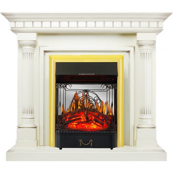 Каминокомплект Dallas - Слоновая кость с патиной с очагом Majestic FX M Brass