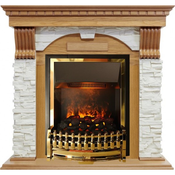 Каминокомплект Dublin - Дуб / Сланец белый с очагом Atherton
